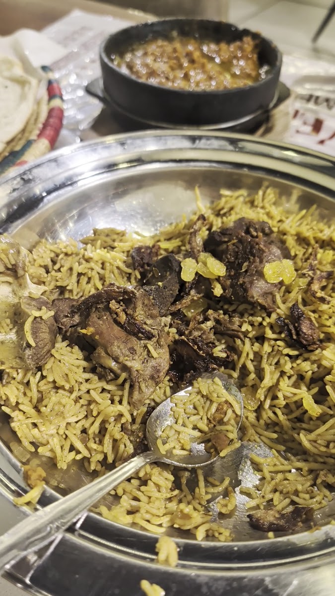 If you’re looking for authentic, flavorful, and 100% halal Yemeni cuisine, Yemandi is a must-visit in Richardson. From the moment you walk in, you’re greeted with a warm, welcoming atmosphere. We sat in the traditional ground seating area, which really added to the experience. While the space was a little small for our party, it still felt cozy and inviting — and honestly made the meal feel even more special. Now let’s talk food — every dish we ordered was delicious in its own way, but a few stood out. The Lamb Haneeth and Chicken Kabsh were hands down the stars of the table. The lamb was fall-off-the-bone tender, perfectly seasoned with deep, savory spices that really bring out that slow-roasted flavor. The chicken kabsh was just as flavorful — moist, fragrant, and paired beautifully with the spiced rice. You could tell the ingredients were high quality and the preparation was done with care. We also got the Chicken Akdah, which came out bubbling hot in a clay pot. The meat was tender and coated in a rich tomato-based sauce that had the perfect balance of heat and spice. Our kids couldn’t get enough of it — they kept asking for more! The Veal Fahsah was comforting and hearty — shredded veal in a bubbling stew, served with freshly baked tandoor bread that had black seeds sprinkled on top. The bread was soft, warm, and perfect for scooping up the stews and sauces. It came out fresh from the oven and added a special homemade touch to the meal. The Charred Beef Lahm had a deep smoky flavor and a juicy, char-grilled finish that added a bold contrast to the rest of the dishes. It was a perfect balance of crispy edges and tender meat — highly recommend. For dessert, we tried the Royal Dessert — a rich, creamy layered pudding topped with nuts. It was dense, filling, and indulgent — definitely something to share. A sweet end to a flavorful meal. Lastly, I have to give a shout-out to our waitress, Ibtihaal. She was amazing…patient, kind, and made us feel right at home. She walked us through the menu and gave great recommendations.