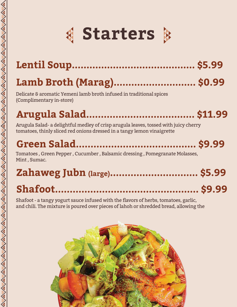 Welcome to Yemandi Yemeni Cuisine, where the vibrant flavors of Yemen come alive in Richardson, TX. Nestled at 888 S Greenville Ave, this charming restaurant specializes in authentic dishes that transport your taste buds straight to the heart of Yemen. The menu offers a delightful array of options, including their standout Lamb Mandi and mouthwatering Beef Kabsah, both celebrated for their hearty portions and rich flavors. Sides like Rashosh Yemeni Bread complement the main courses beautifully, although some diners suggest a touch more seasoning can elevate the experience. The warm atmosphere and friendly staff make each visit memorable, creating a cozy setting perfect for gatherings. Guests consistently rave about the unique flavors and excellent hospitality, making Yemandi not just a meal, but a cherished dining experience. Dive into a culinary journey and savor the authentic essence of Yemeni hospitality.